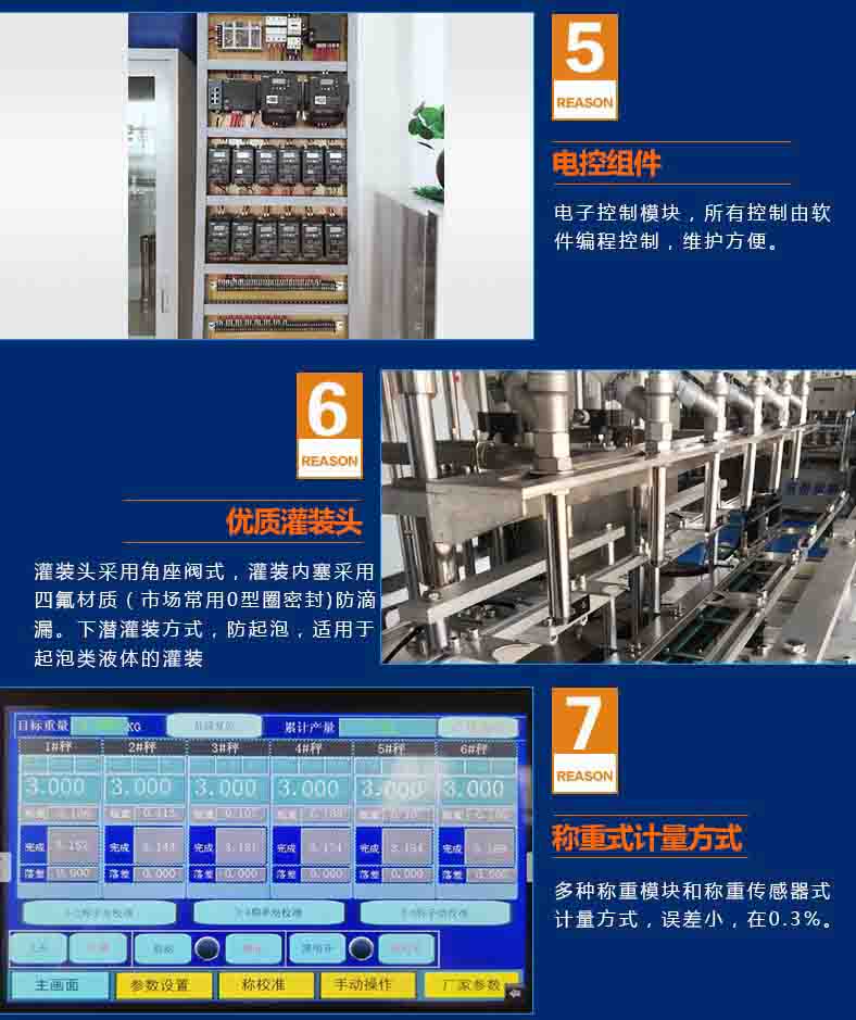 8、每個灌裝頭均有稱重和反饋系統,可對每個頭的灌裝量進行設置和微量調整。
