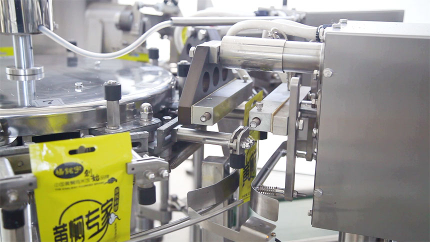 袋寬調節方便:由電機控制,只需通過一個按鈕就可同步調節各組機夾;