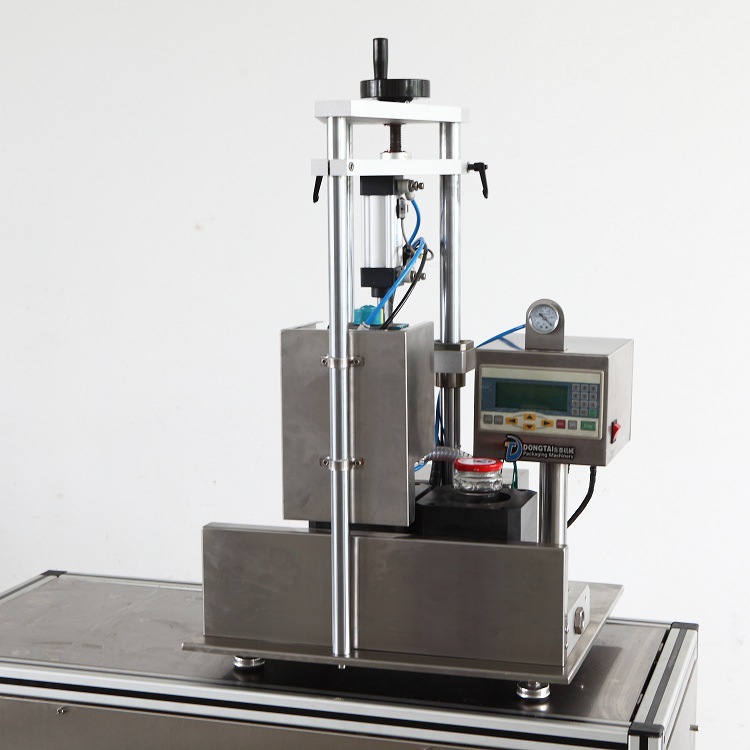 先從個詞半自動來講,半自動指的就是手動與機器相結(jié)合的操作流程:半自動玻璃瓶真空封口機是采用了人工上瓶,人工出瓶,機動旋蓋與抽真空的方式來完成流程。由于人工上瓶,并且該半自動玻璃瓶真空旋蓋機有無瓶不上蓋,無瓶不抽真空的特點,所以大大減少了對瓶蓋與瓶身的損害。并且人工與機器的配合絲毫不浪費時間,比純手工的生產(chǎn)效率要幾倍,還更節(jié)省人力,一臺機器只需一個人便可輕松完成。